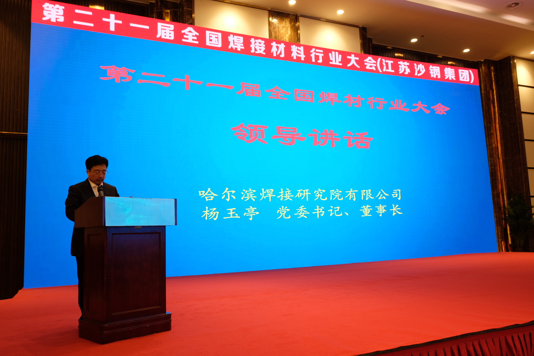 來自我國焊接材料制造企業(yè)、原輔材料及焊材生產設備供應企業(yè)、焊接材料應用單位及大學、科研院所等200多家單位的近400名代表參加了會議。哈爾濱焊接研究院有限公司楊玉亭董事長、李連勝總經理、儲繼君黨委副書記、徐鍇副總經理,四川大西洋焊接材料股份有限公司李欣雨董事長、張曉柏總經理、蔣勇總工程師,天津市金橋焊材集團股份有限公司肖輝英常務副總經理,天津大橋焊材集團有限公司李典釗總工程師,山東索力得焊材股份有限公司關常勇副總經理,哈焊所華通(常州)焊業(yè)股份有限公司李振華副總經理,哈爾濱威爾焊接有限責任公司陳波總經理,江蘇沙鋼集團有限公司沙鋼鋼鐵研究院麻晗院長等領導蒞臨了本次大會。