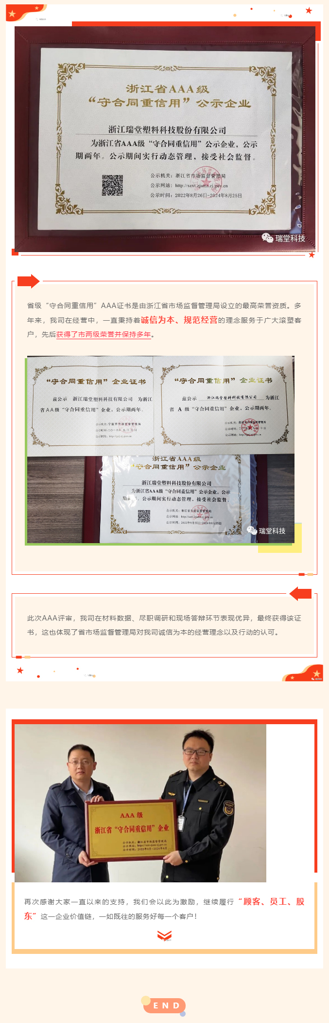 公司動(dòng)態(tài) | 祝賀我司被評(píng)為浙江省AAA級(jí)"守合同重信用"企業(yè)